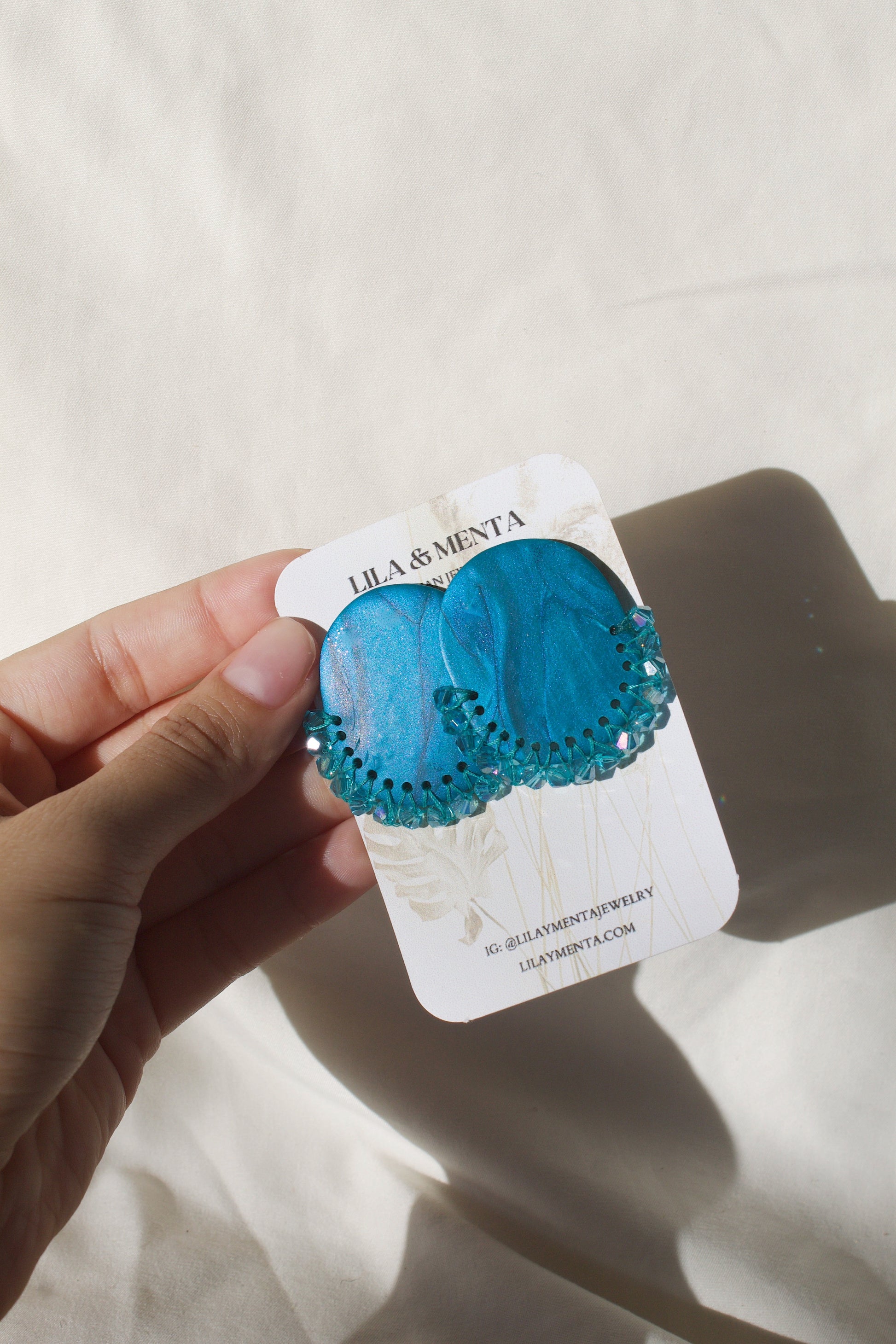 These modern statement earrings are 100% handmade out of polymer clay. Thought they are big in size, these earrings are super lightweight.