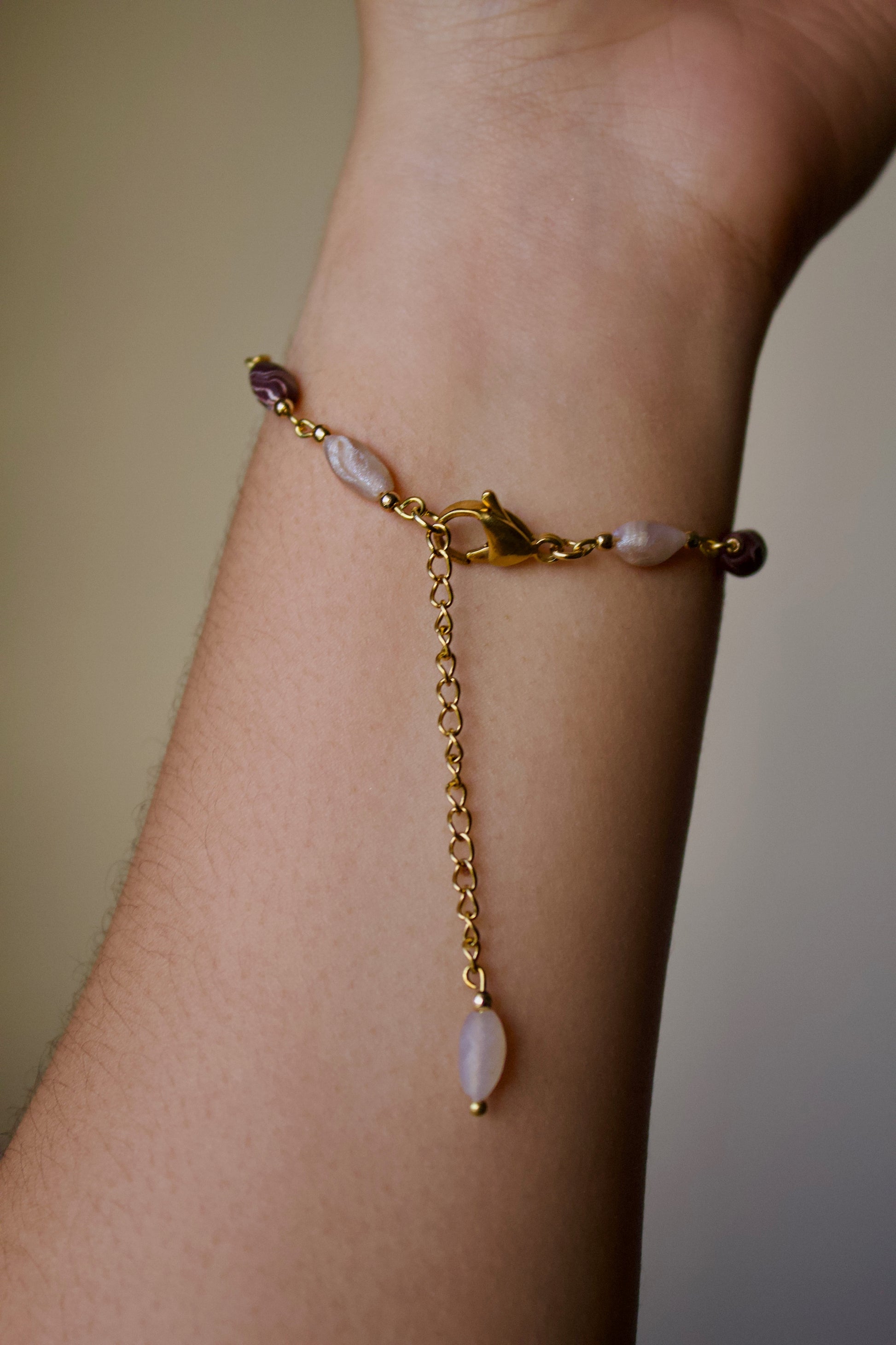 La pulsera Pia es una pulsera delicada hecha a mano con arcilla polimerica. Es inspirada en diferentes rocas alcanzando un look abstracto como las rocas.